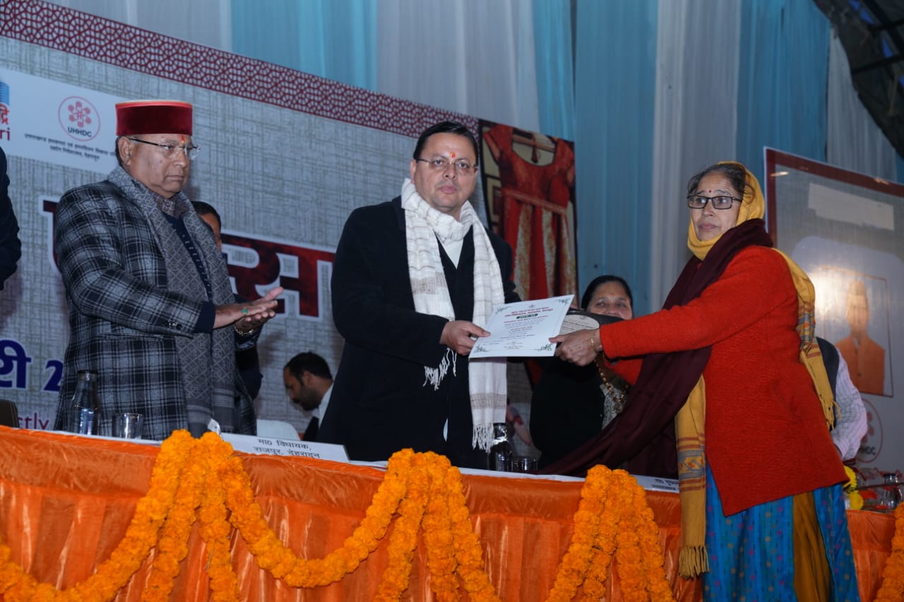 देहरादून(ब्यूरो)-मुख्यमंत्री श्री पुष्कर सिंह धामी ने शनिवार को देहरादून के रेसकोर्स स्थित बन्नू स्कूल मैदान में आयोजित स्टेट हैंडलूम एक्सपो में प्रतिभाग किया। इस अवसर पर मुख्यमंत्री ने एक्सपो में लगी विभिन्न स्टॉलों का निरीक्षण कर शिल्पियों, बुनकरों एवं लघु उद्यमियों का उत्साहवर्धन किया। मुख्यमंत्री ने इस अवसर पर दस लोगों को उत्तराखंड शिल्प रत्न पुरस्कार भी प्रदान किए। इसके तहत एक लाख रुपए की धनराशि, प्रशस्ति पत्र एवं अंग वस्त्र दिए गए।